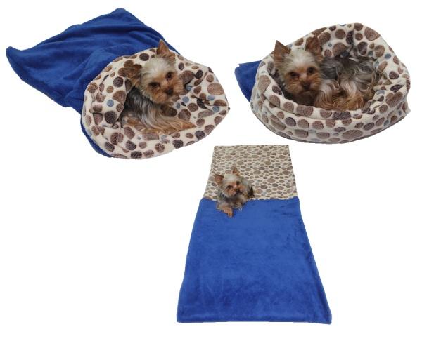 Spací pytel pro psy XL - modrá/hnědá kolečka