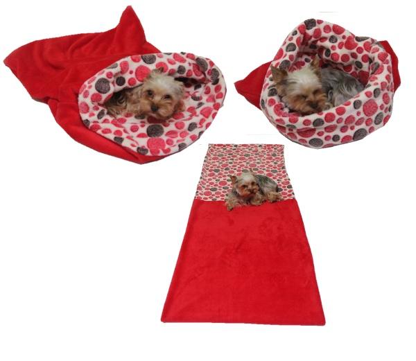 Spací pytel pro psy XL - červená/červená kolečka | Marysa