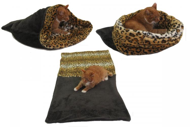 Spací pytel pro kočky XL - tmavě šedá/leopard