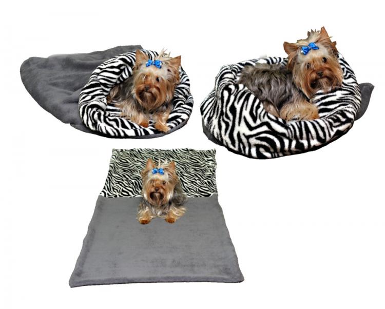 Spací pytel pro psy XL - šedá/zebra