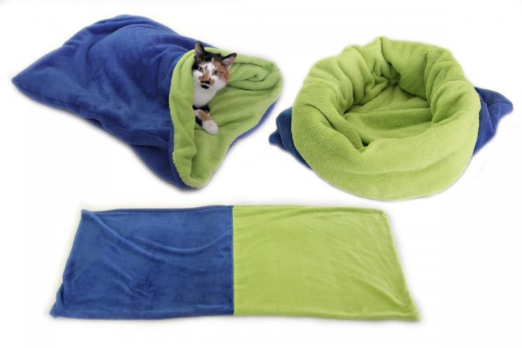 Spací pytel pro kočky XL - tm.modrá/zelená