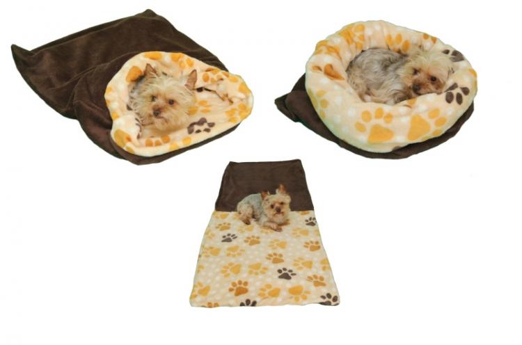 Spací pytel pro psy XL - hnědá/tlapky | Marysa