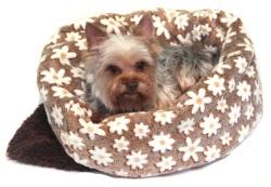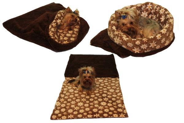 Spací pytel pro psy XL - DE LUXE - tm. hnědá/kytičky