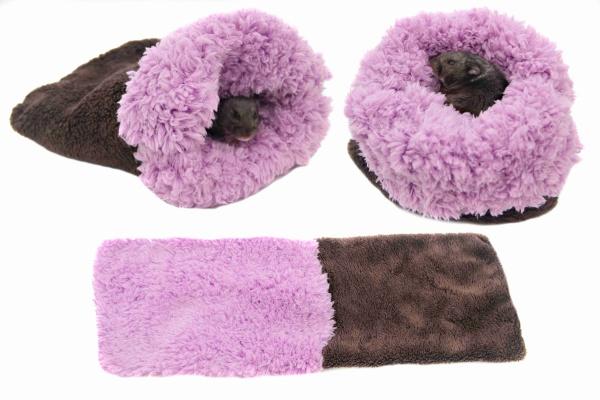 Spacá pytel pro křečky XS - tm.hnědá/fialová - DE LUXE | Marysa